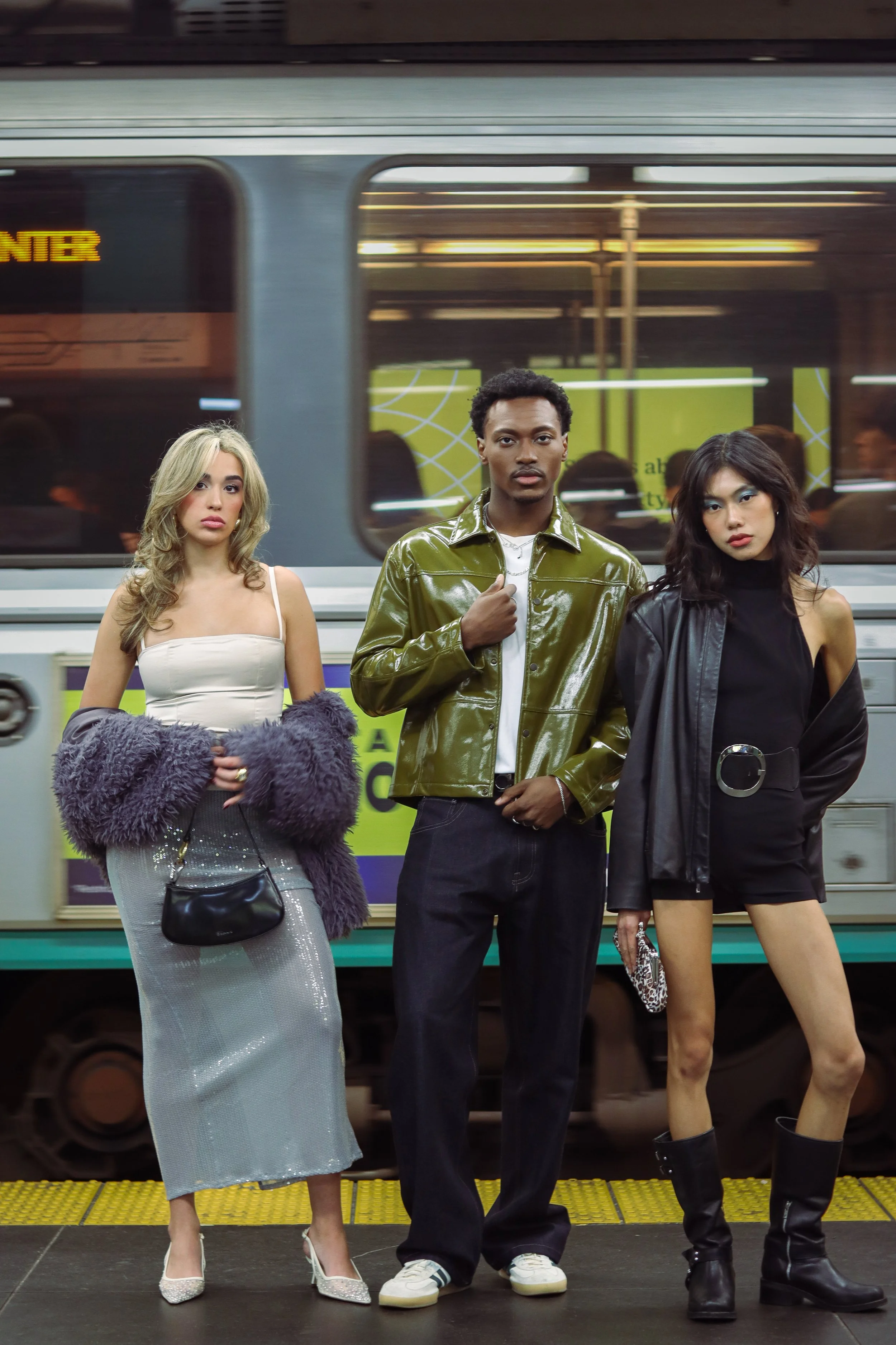 One of the most popular and budget friendly modes of transportation amongst college students and Boston locals is the T. Our second scene, “T Time,” takes a typically mundane moment and turns it into something special. We transformed an ordinary, often overlooked setting into a picturesque moment, capturing the models’ fun and expressive outfits while building anticipation for the night ahead. The simplicity of the location allows the models to truly shine, highlighting their importance to the shoot and setting the tone for the excitement to come. We decided not to shoot a scene while the models are out, allowing viewers to savor the built-up anticipation and excitement and letting their imaginations decided where the night leads.